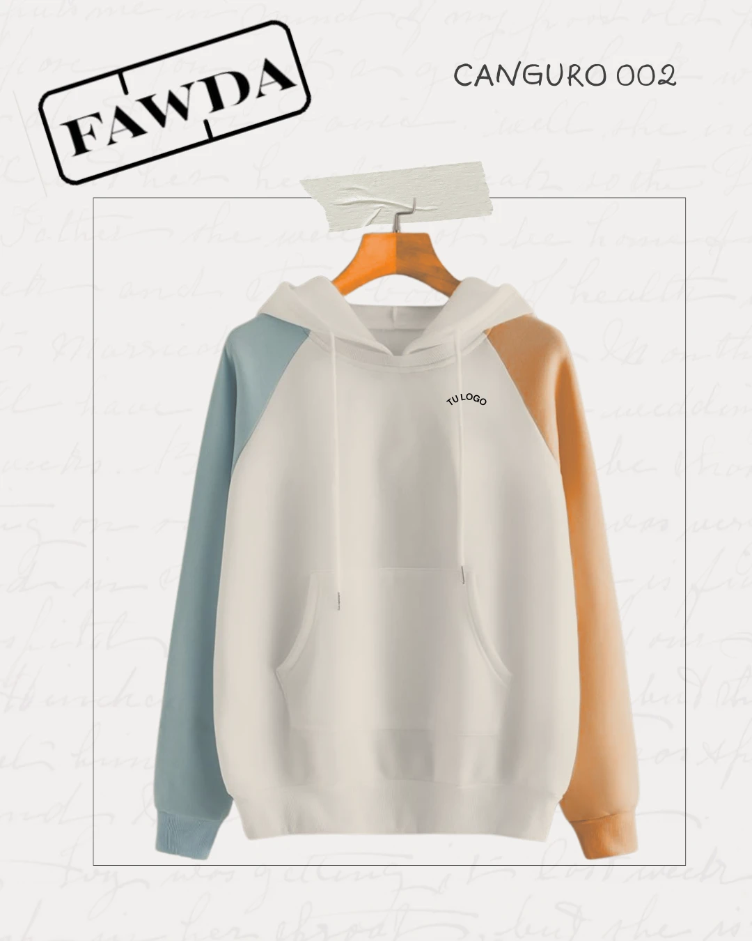 Buzo canguro de frisa invisible 100% algodón. Combinación de tres colores a elección. Mínimo de compra 20 unidades.