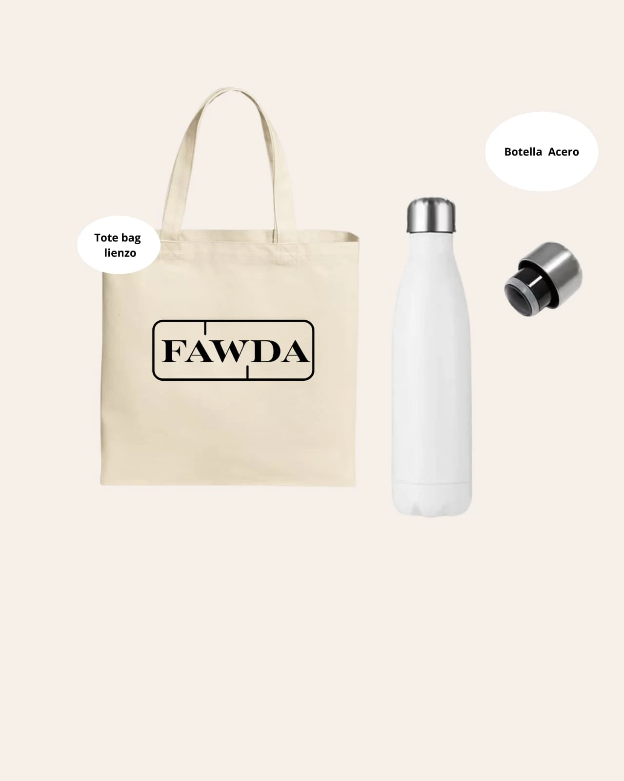 Tote bag de lienzo + botella de acero. Ambas personalizadas