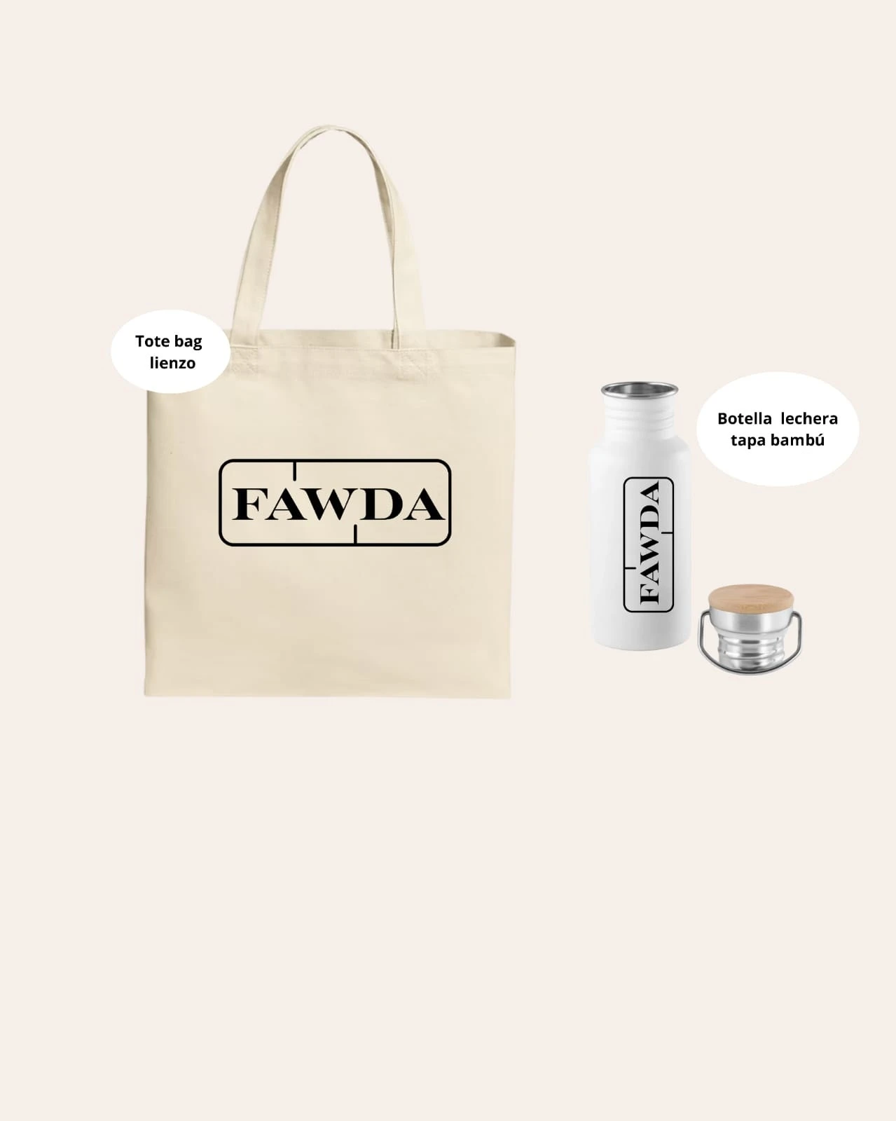Tote bag de lienzo + botella lechera tapa bambú