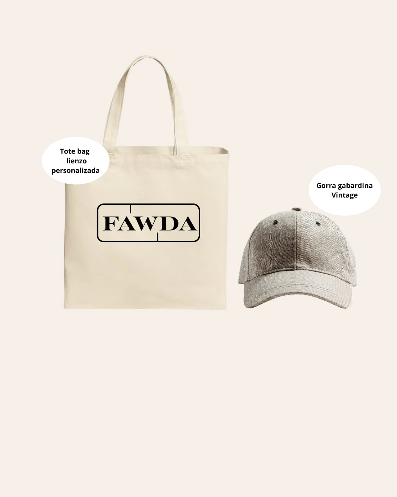 Tote bag de lienzo +gorra gabardina vintage. Ambas personalizadas.